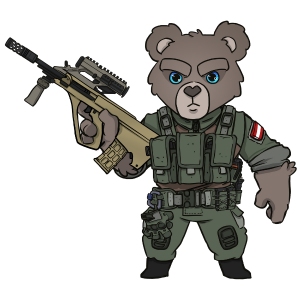 The Guard Bear stands vigilantly with the STG58 in hand, ready to defend Austria. In his proud uniform, he represents the strength and discipline of the Vienna Guard.