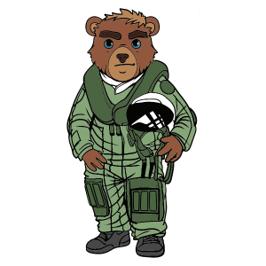 Our Eurofighter Pilot Bear proudly flies in service for Austria, equipped with a helmet and flight suit. As a symbol of courage and the spirit of adventure, he represents the Austrian Air Force in his charming bear form.
