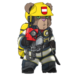 The V5 Firefighter Bear was created in cooperation with the Austrian Federal Fire Brigade Association (ÖBFV) and represents a firefighter bear including breathing apparatus and thermal imaging camera.