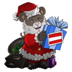 The Christmas Bear brings festive joy and gifts to everyone. Dressed in a traditional red Christmas coat with white fur trim and a Santa hat, he's reminiscent of the classic Santa Claus. With a cheerful expression and a large gift decorated with a bow, emblazoned with the Austrian flag, he embodies the joy of giving. The sack full of gifts on his back demonstrates his generosity and the anticipation he brings to the Christmas season.